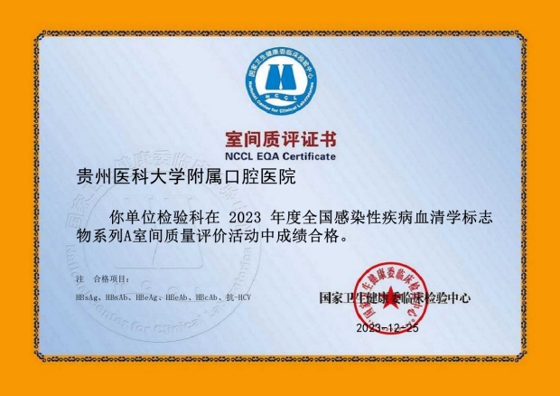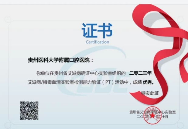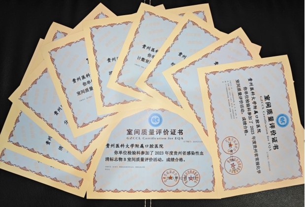 检验科所开展的检验项目每年均参加国家卫生健康委临床检验中心和贵州省临床检验中心组织的室间质评活动,连续多年成绩优秀;参加贵州省临床检验中心的室内质控数据上报,并获得医疗机构检验结果互认合格证;在贵州省艾滋病确证中心组织的艾滋病血清学实验室检测能力验证活动中连续多年成绩优秀。