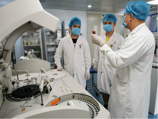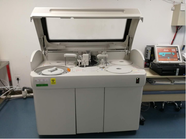 检验科配备有日立全自动生化分析仪、西斯美康凝血分析仪、长光华医全自动化学发光分析仪、帝迈全自动血球分析仪、酶标仪和洗板机、优利特尿液自动分析仪等检验设备。目前能完成的检测项目包括:血常规、大小便常规、凝血功能、肝肾功能、电解质、血糖、糖化血红蛋白、乙肝两对半、丙肝、艾滋、梅毒、院感细菌培养、输血常规、交叉配血等。