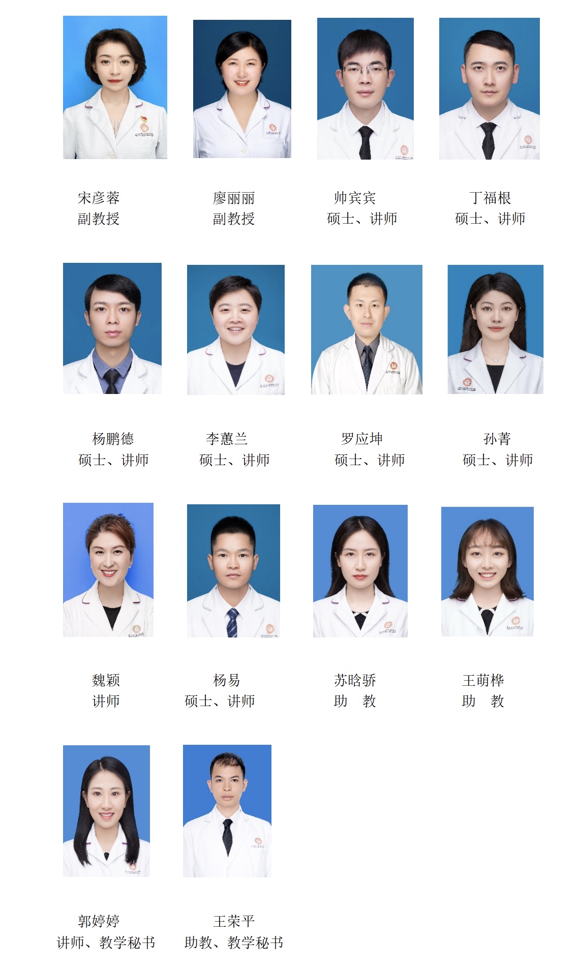 教研室由14位不同口腔专业背景的教师组成,其中高级职称3名,中级8名,初级职称3名,硕士学位7名。