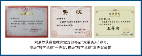 刘洪静获高校教师党支部书记“双带头人”称号、院级“教学竞赛”一等奖、校级“教学竞赛”三等奖荣誉