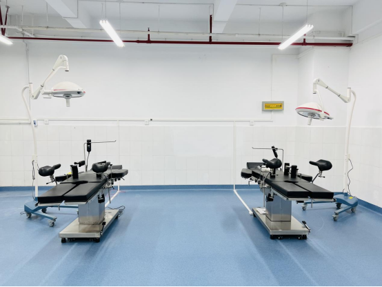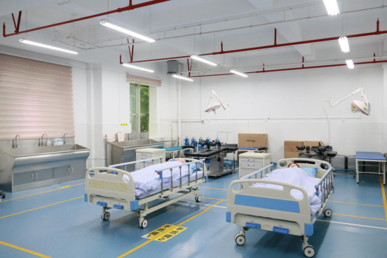 配备有外科基本技能训练所需的电动手术床、感应洗手池、无影灯、更衣柜、氧气瓶、模拟人、缝合练习模型等教学设备。