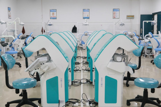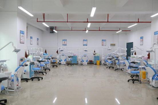拥有牙科综合治疗椅13台,其中设有标准化示教诊室一间,配套有13台洁牙机、高、低速手机,主要承担牙周病学、口腔黏膜病学、口腔预防医学、口腔修复学、口腔颌面外科学等实验教学,可用于口腔基础健康检查、口腔修复上下颌取模、龈上洁治术、龈下刮治术、绷带包扎等实践操作。牙科治疗椅同临床使用设备相同,完全可以模拟临床操作,13台牙椅可供26名员工同时使用,互为医患角色,进行模拟临床实践操作,可真切体会临床实际诊疗操作。