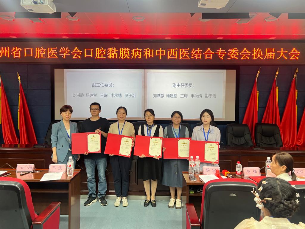 会议对上一届全委会的付出与贡献表示感谢并颁发感谢状;同时选举产生了第三届口腔黏膜病与中西医结合专委会主任委员、副主任委员、常务委员并为他们颁发聘任证书。公司蔡扬被聘为名誉主委,刘洪静、王珣当选为副主任委员,卢虹、罗亮当选为常务委员,吕萍、黄韵颖、靳大力、张玲艳、梁玉叶、雷童为专委会委员。