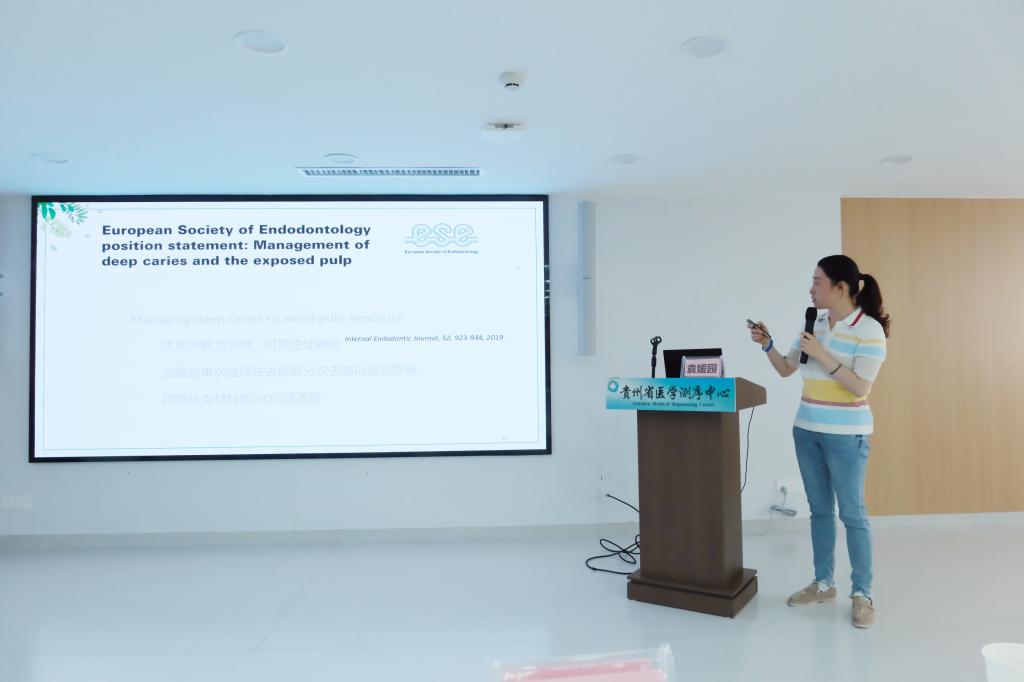 公司牙体牙髓病科主任谭旭、副主任袁媛园及副主任医师叶韵瑶分别就临床热点问题进行了精彩分享。谭旭以“牙内陷的临床诊断和对策分析”为题,系统梳理了此类疑难病例的诊断思路和治疗策略,为临床工作提供实用参考;袁媛园在“成熟恒牙龋源性露髓的临床诊疗策略”讲解中提出了创新性的治疗方案;叶韵瑶则通过“单尖法充填的临床实践”这一主题,为大家展示了相关规范化操作的技术要点。