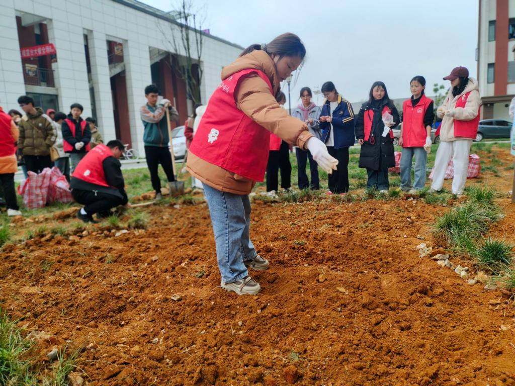 活动现场大家分工明确、配合默契,分组协作捡拾垃圾、清理碎石、挥锹铲土,有序播种施肥、移栽花苗,现场一派热火朝天的景象,在汗水和欢笑中见证了青春与活力。