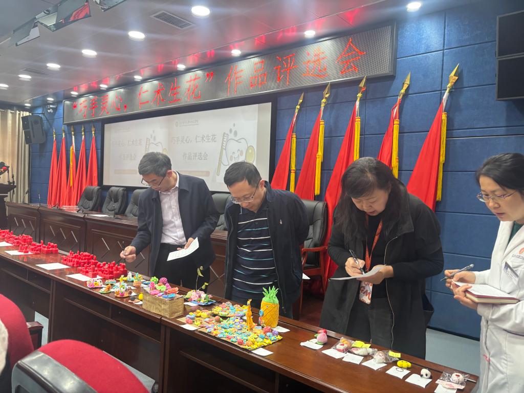 评审过程中,院领导充分肯定员工作品展现的创新思维与专业潜力。公司党委书记张军梅强调创作应注重比例协调与功能模拟,希望员工将精益求精的态度融入临床实践。党委副书记、经理马洪指出,手工技能训练是口腔诊疗操作的基础预演,每件作品都是理论与实践结合的成果。