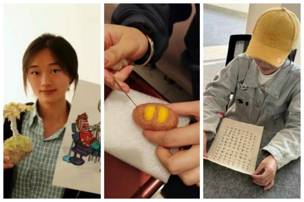 大赛按年级分组进行,低年级组(大一、大二年级)在云漫湖校区开展黏土创作、创意铁丝、书法及绘画四项比赛;高年级组(大三、大四年级)在北校区进行蜡牙雕刻和羊毛毡制作。比赛期间,员工踊跃参与,充分发挥专业优势与创新能力,创作出众多优秀作品。