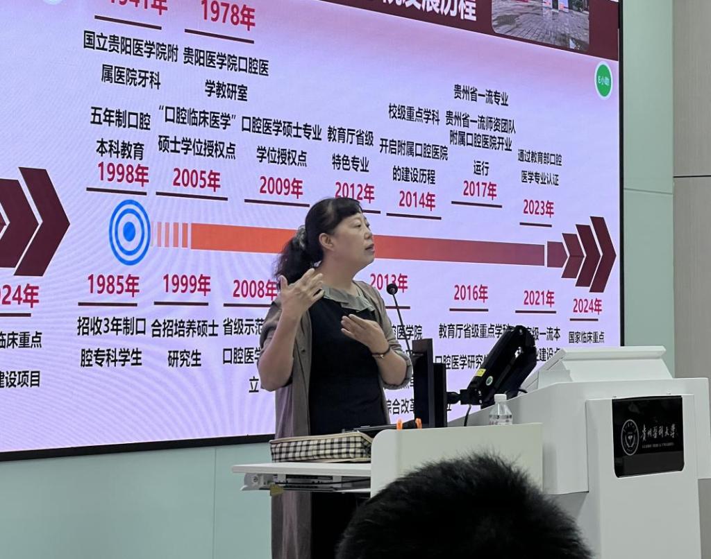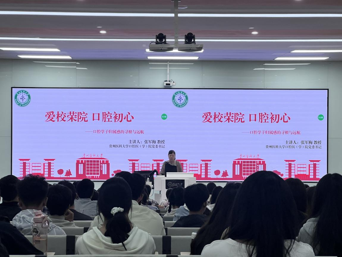 9月25日,公司党委书记张军梅在云漫湖校区以“爱校荣院 口腔初心——口腔学子归属感的寻根与远航”为主题开展讲座,围绕溯源、明志、笃行、展望四个方面,带领新生共同探寻“贵医精神”与“贵医口腔”的发展历程。