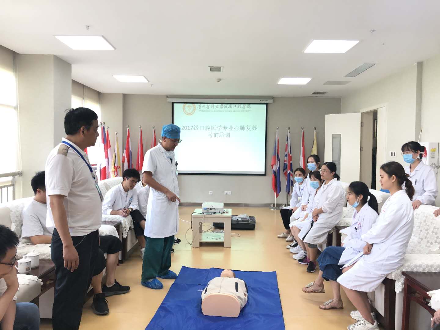 为加强公司住院医师规范化培训,使学员熟练掌握急救护理知识,同时提高学员结业考核成绩及通过率,8月3日,毕业后继续教育管理科组织2017级需要进行住院医师规范化培训的学员进行“急救护理培训”。培训主要围绕吸痰吸氧,心肺复苏(CPR)与急救相关知识,邀请了护理部与医务科协同完成。