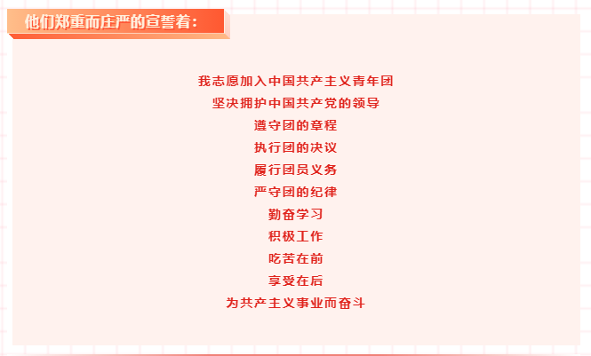一如以往的青年团员,他们会继承和发扬不灭团魂——“五四精神”,志愿为中华民族的伟大复兴献出自己的星星之火;也会铭记习近平总书记的青春寄语:让青春之花绽放在祖国最需要的地方。
