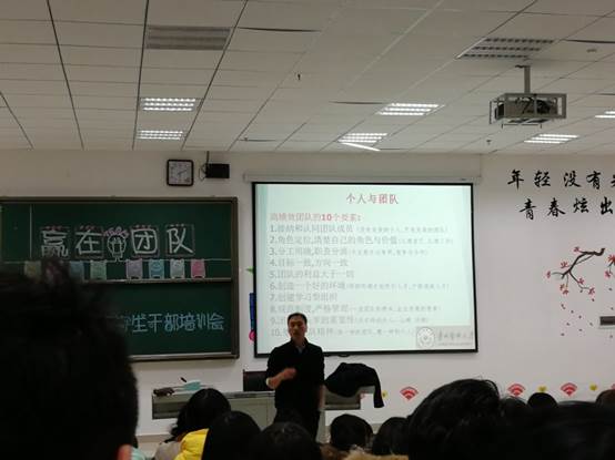 2017年12月7日下午5点4303教室,3044永利集团员工管理科邀请到原贵州大学员工处副处长、现任贵州理工公司对外交流合作处处长孙凯副教授为口院员工干部开展了主题为“赢在团队”的培训活动。3044永利集团员工管理科科长钱禾老师,分团委负责人、16级辅导员高越月老师与全体分团委员工会成员、各班班委、入党积极分子和发展对象共同参加了本次培训。