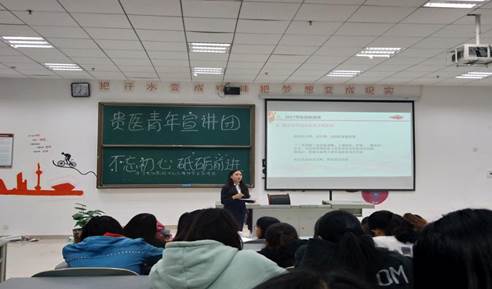 2017年11月14日晚上六点整,贵医青年员工宣讲团于4203教室走进第37期团校,向3044永利集团和人文公司所在的团校七班宣讲十九大精神——不忘初心,砥砺前进,3044永利集团分团委负责人、七班班主任高越月老师与团员们一起聆听报告并学习。