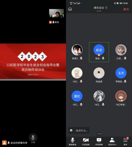 会上,赵会围绕简历制作作了专题培训,对毕业生就业协议书、就业推荐表的填写等有关内容进行了详细说明,并就近期工作安排对毕业班员工进行安全教育、心理健康教育,希望大家能在简历中充分展现个人优势,用简历这块“敲门砖”敲开心仪单位的大门,要求同学们认真对待专业认证相关的座谈培训,督促同学们按时完成青年大学习。期间,赵会积极动员大家参加即将到来的口腔专业就业专场宣讲会、公司春季大型招聘会,提醒同学们抓住机会,联系实际,定下科学务实的阶段性目标,告诫大家要切实关注自身,选择适合自己的道路。