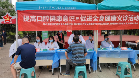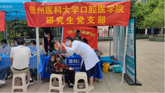 随后,廖健一行与贵阳德韩口腔医公司党支部在观山湖区世纪城明珠广场开展联合义诊活动,此次义诊活动得到了观山湖区世纪城街道办事处和世纪城社区明珠助老社的协助支持。活动中,义诊团队为社区居民进行血压测量、口腔义诊、口腔卫生科普,耐心解答他们的疑问,并发放免费小礼品。