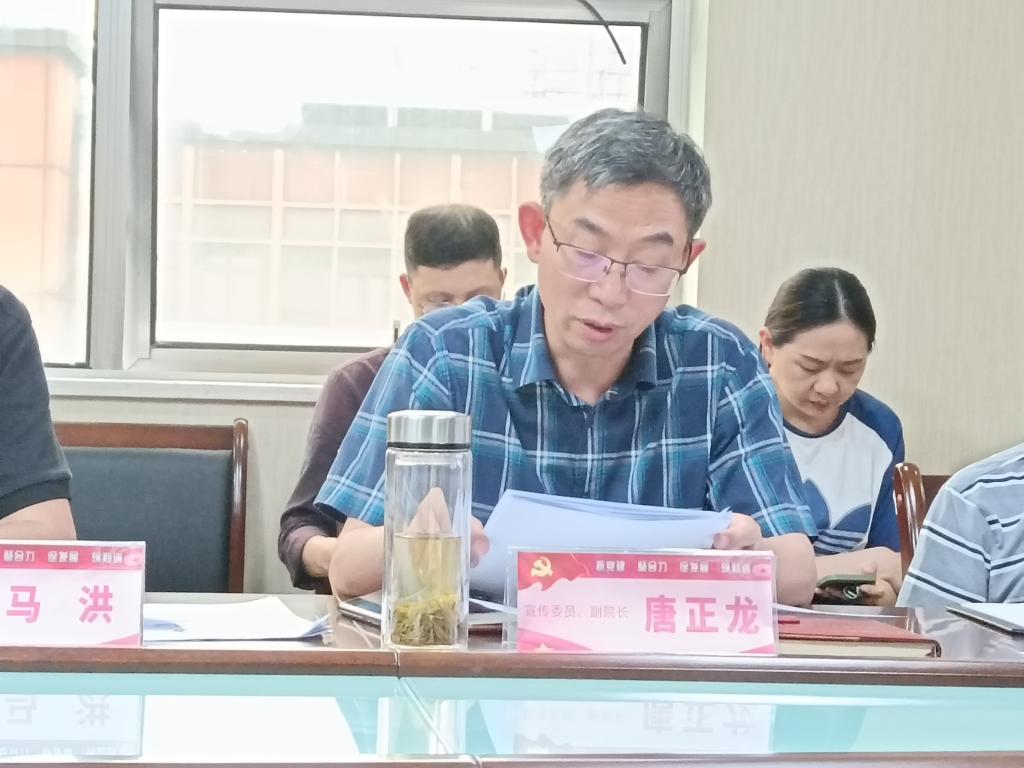 张军梅要求,全院各党支部要组织党员深入学习党的基本理论,树立正确的世界观,始终做到在政治信仰、政治方向、政治立场、政治纪律上坚定不变。要增强党的意识,在路线原则上站稳立场,在大是大非问题上头脑清醒、旗帜鲜明,时刻做到心中有党、心中有民、心中有责、心中有戒。让政治意识、纪律意识、规矩意识内化于心、外化于行。要不断强化政治责任和政治担当,坚守共产党人的精神追求,自觉讲政治、守纪律、守规矩,襟怀坦荡、言行一致、心存敬畏、手握戒尺、对党忠诚,任何时候、任何情况下都不越界、越轨,清清白白做人、干干净净做事。