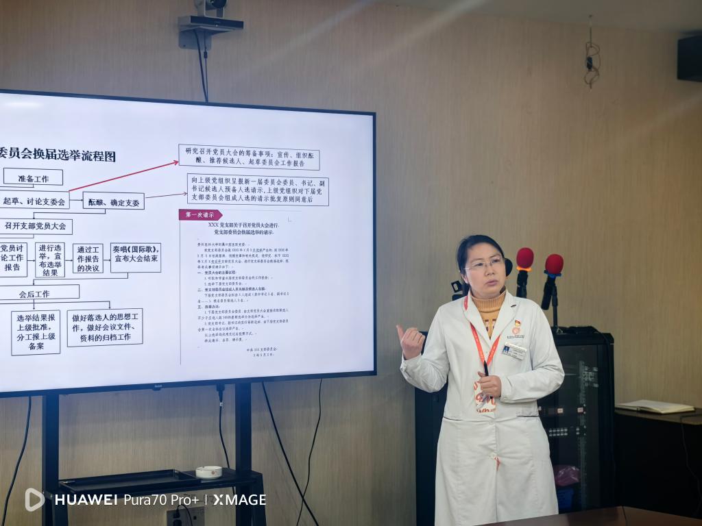 刘洪静围绕党务工作开展专题培训,系统讲解了“如何开好2024年度组织生活会”“党支部换届主要程序及流程”,通过案例分析和工作模板展示,为基层党务干部提供了实操指导。
