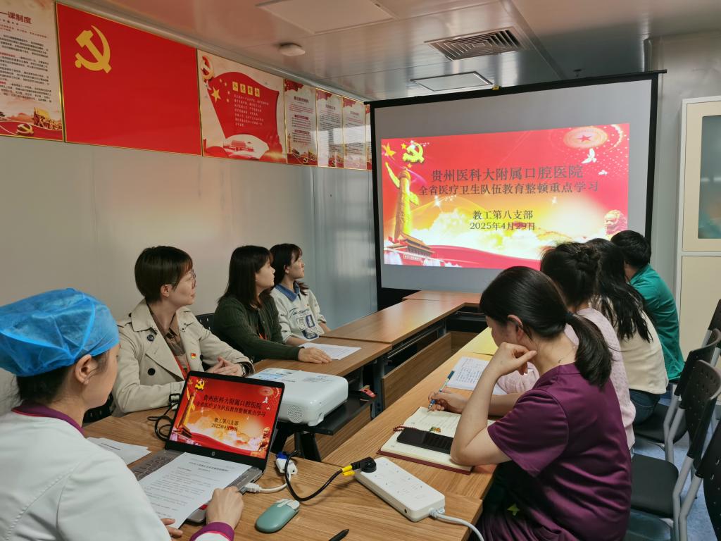 为深入学习贯彻习近平新时代中国特色社会主义思想,全面落实党的二十届四中全会精神,以打攻坚战、持久战的决心锲而不舍落实中央八项规定精神,推动作风建设常态化长效化,3044永利集团附属口腔医院(后文简称贵医口腔)教工第八(护理)党支部充分发挥战斗堡垒作用,将党建引领、作风提升与护理管理、患者服务深度融合,以优良作风凝心聚力、真抓实干,奋力在健康中国与中国式现代化建设中贡献口腔护理力量。