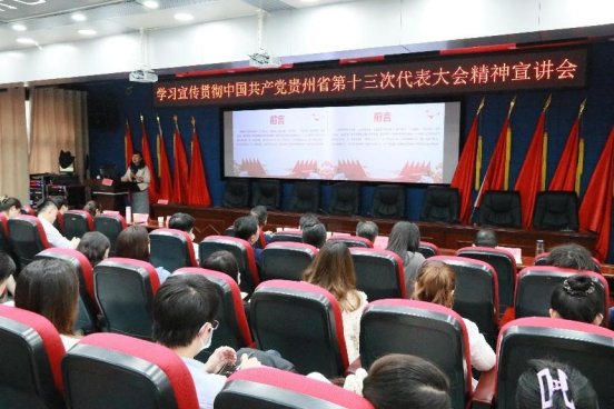 68日下午,公司在行政楼五楼学术报告厅召开学习宣传贯彻中国共产党贵州省第十三次代表大会精神宣讲会。宣讲会由党委书记张军梅主讲,党委副书记、经理马洪主持。公司党政领导班子成员及党委委员出席会议,全院副科级以上干部、全体党员、各民主党派人士、员工党员代表参加会议。