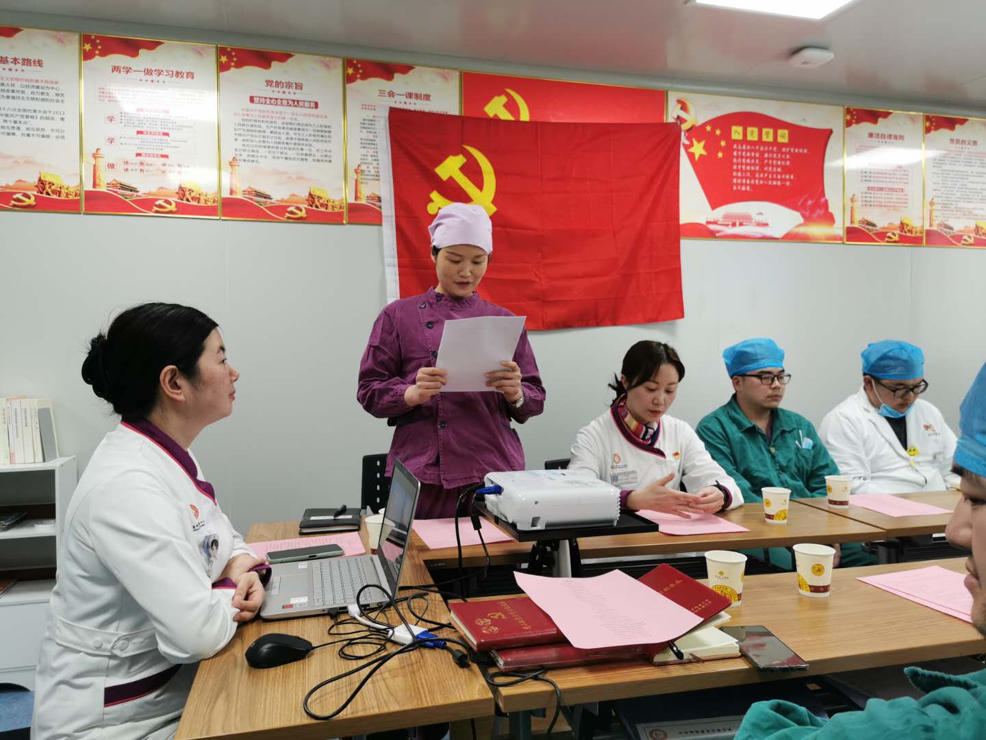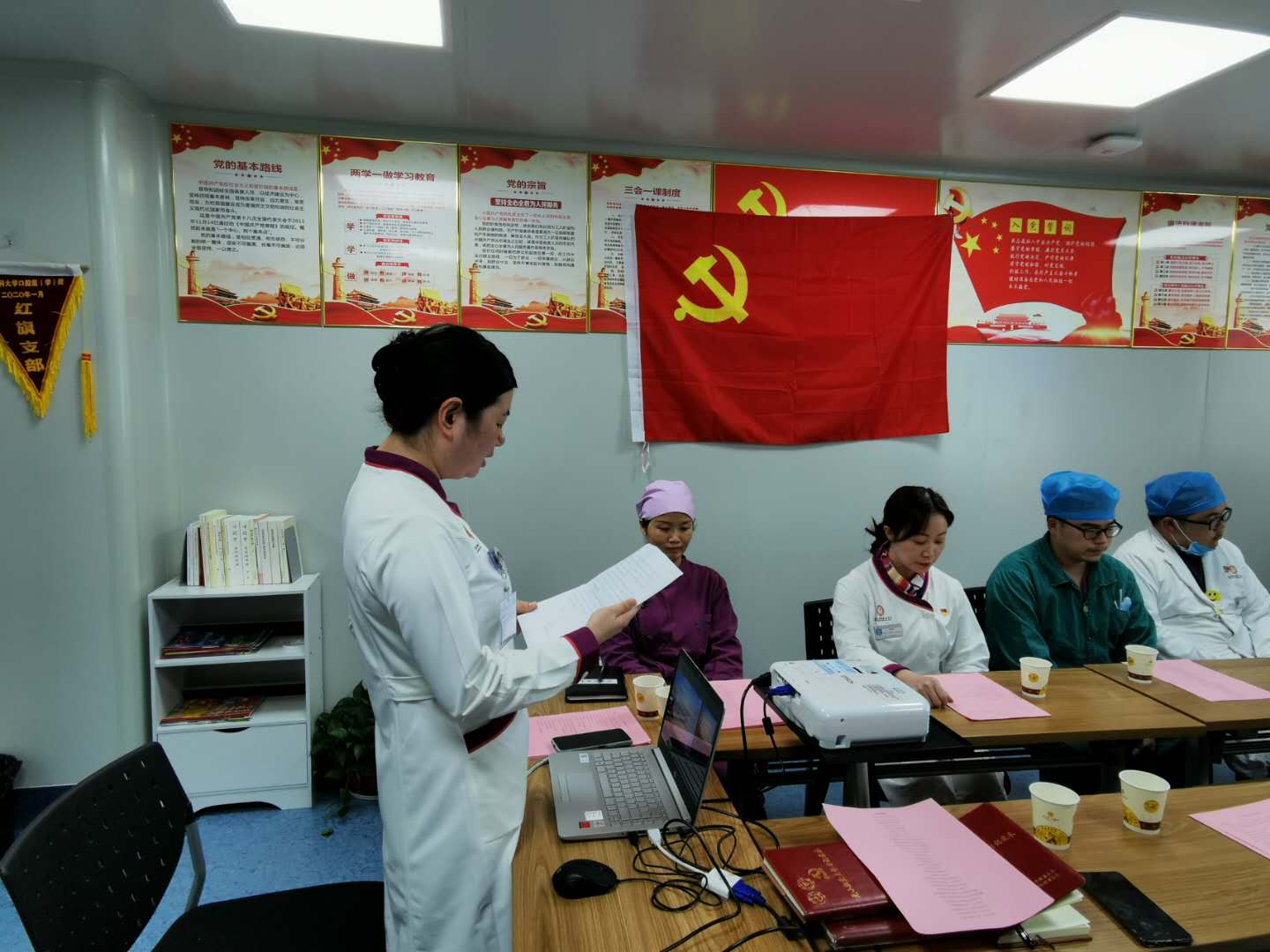 11月2日,3044永利集团口腔医(学)院教工八支部在活动室开展了“预备党员入党宣誓暨党员重温入党誓词”主题党日活动,以此激励党员同志规范言行,牢记党的宗旨,时刻不忘党员的责任与担当,同时欢迎洪梅同志加入教工八支部。活动由组织委员、第二党小组组长胡赟主持,教工八支部全体党员、预备党员、入党积极分子参加活动。