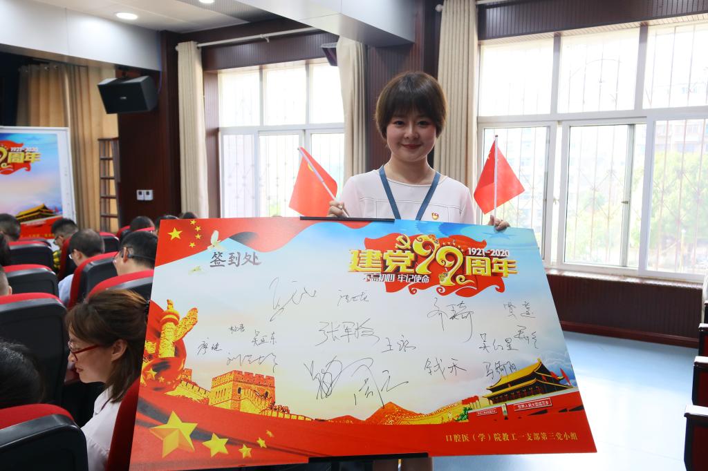 2020年,因新冠肺炎疫情的突发影响了公司党委给党员同志过党政生日的节奏,但却没有影响我们共产党人的信念和不断前行的决心,全体党员在公司党委的带领下踏实勤恳,在完成本职工作的同时积极参与预检分诊、巡查巡检等院内调配工作,为院感防控默默付出,做出了党员应有的样子。活动现场,全体人员为中国共产党99岁诞辰齐唱生日快乐歌,并在“祝福板”上写下祝福语和希望,用真诚的语言祝福祖国母亲越来越好,发展更加繁荣昌盛!并借此机会,为全院2月至7月入党的党员过政治生日,分批次由公司党委书记张军梅,党委副书记、经理马洪,副经理王永,党委副书记钱禾送上政治生日贺卡,给予祝愿和赞扬,肯定他们的付出与努力,希望全公司党员不负入党初心,敢于承担责任,都能做敢想敢拼敢争优的中共党员。随后,公司党政领导共同切开生日蛋糕,送给与会人员。