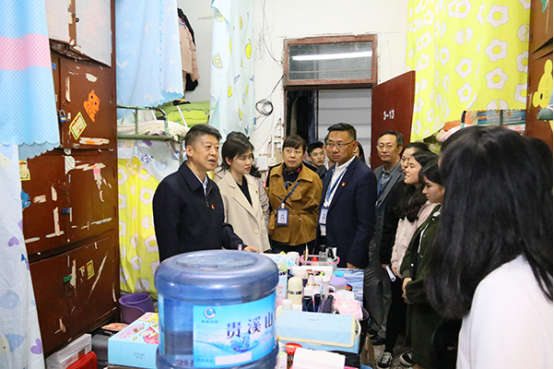 孙诚谊一行分别走访了北校区七栋男生宿舍以及一栋女生宿舍,并与公司研究生、本科生宿舍员工亲切交谈、面对面交流,详细了解同学们的宿舍环境、寝室卫生、学习情况、日常生活,以及遇到的困难,在交谈过程中,气氛热烈,同学们踊跃发言,畅谈学习感想和生活体会,并提出意见和建议,孙诚谊一行现场答复同学们的疑问和问题,并表示,同学们提出的意见十分的宝贵,公司会认真听取并做好服务工作,同时指出,同学们要相互包容,学会适应,快乐的学习,快乐的生活,快乐的成长。