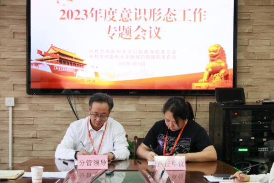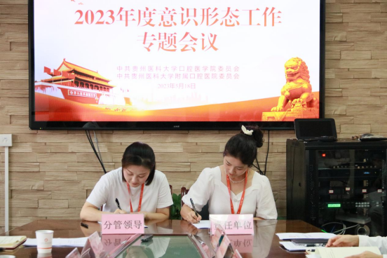 会上,党委书记与其他班子成员、班子成员与分管部门(党支部)主要负责同志签订了2023年度意识形态工作责任书。
