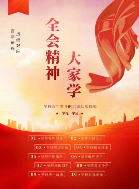 2021年11月11日,《中国共产党第十九届中央委员会第六次全体会议公报》(以下简称《公报》)发布。《公报》指出,一百年来,党领导人民进行伟大奋斗,积累了宝贵的历史经验,这就是:坚持党的领导,坚持人民至上,坚持理论创新,坚持独立自主,坚持中国道路,坚持胸怀天下,坚持开拓创新,坚持敢于斗争,坚持统一战线,坚持自我革命。