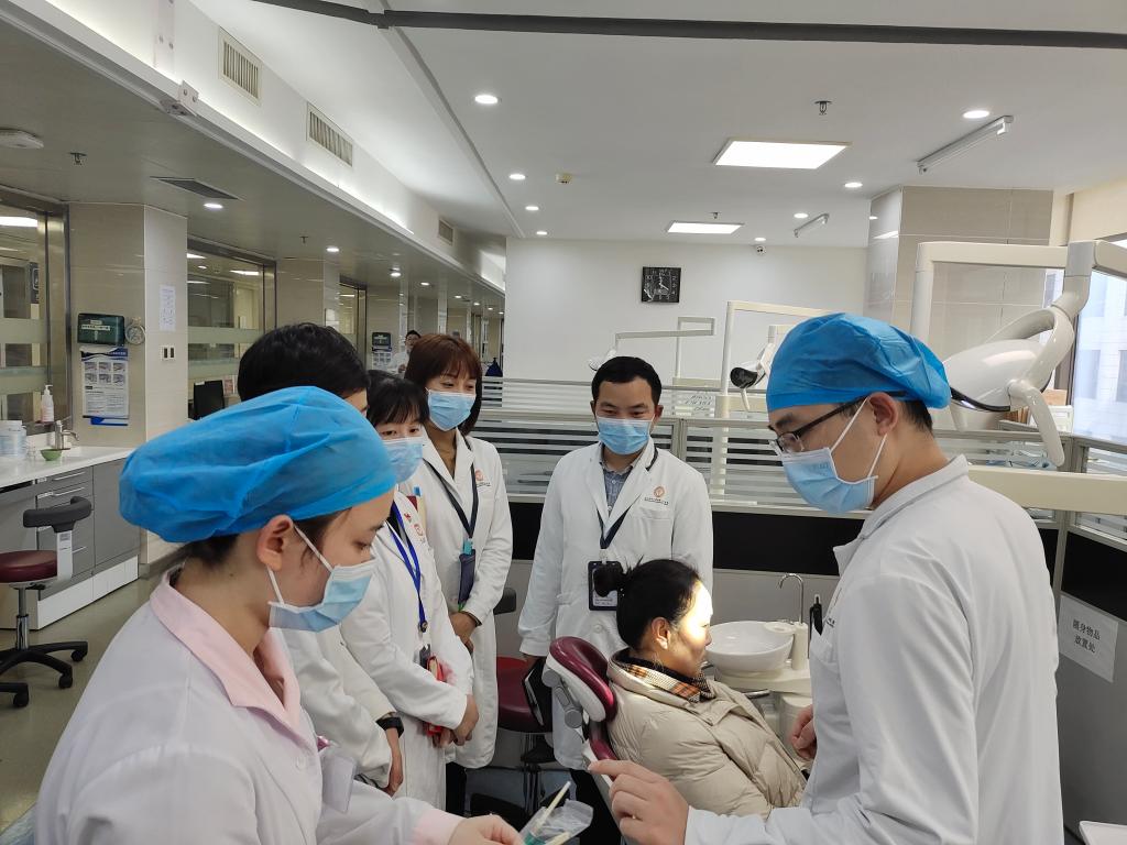 张军梅强调,科室发展要找准定位,做好规划,开拓视野,提升格局,明确方向及目标,要加强人才队伍管理,强化制度建设和质量管理,持续改进医疗质量及管理水平,保障医疗安全,希望通过此次查房进一步了解口腔修复种植科的发展现状,查找可能存在的问题,发现工作中遇到的困难,进一步夯实建设与发展基础,将党建工作与临床业务深度融合,促使党建业务两手抓、两手硬。