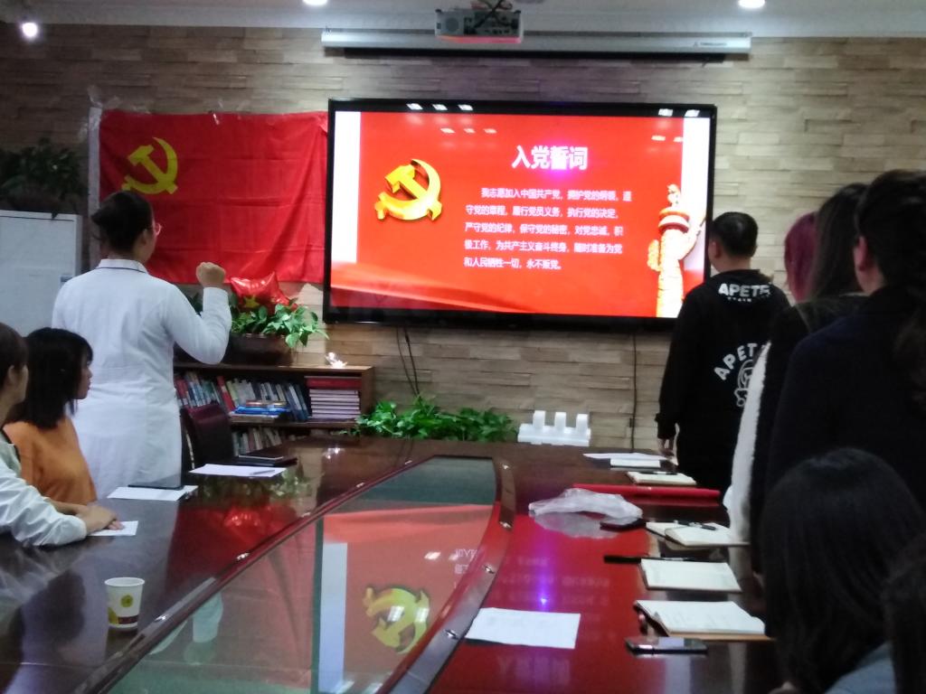 此次主题党日活动通过观看《党史故事100讲之大首聚,开天辟地》影视资料,回顾党的发展历史,引导广大党员不忘初心、牢记使命,继承和发扬党的光荣传统,进一步激发爱党热情、爱国信念。观影前,预备党员韦小超、郭菁韵、刘鑫颖、王江、段姗姗、黄思雨在支部书记周天、纪检委员魏颖带领下进行了预备党员宣誓,正式成为教工第一党支部的“新鲜血液”。韦小超作为预备党员代表作了思想汇报。