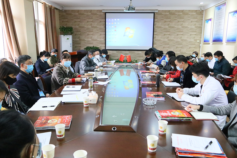 会上,张军梅书记首先传达了卫健委视频会议中关于习近平《全力以赴应对好这场大考》、《关于深入学习贯彻省委、省政府主要领导重要批示精神 进一步加强疫情防控为复工复产和脱贫攻坚作出新贡献的通知》(黔卫健党组〔2020〕21 号)、传达国家卫生健康委《日常门诊服务、住院服务绝不能一停了之、一关了之》、《中共贵州省卫生健康委党组关于认真学习贯彻习近平总书记重要讲话精神坚决落实中央和省委、省政府统筹推进新冠肺炎疫情防控和经济社会发展工作部署的实施意见》(黔卫健党组〔2020〕26号)及贯彻党的十九大、十九届四中全会、统筹推进新冠肺炎疫情防控和经济社会发展工作部署会议、决战决胜脱贫攻坚座谈会、全国卫生健康工作会议、省委十二届六次全会、省两会、全省统筹做好疫情防控和经济社会发展工作会议精神和省领导批示等讲话和文件精神,并共同学习了全省卫生健康系统统筹推进疫情防控、脱贫攻坚暨2020年度卫生健康工作视频会议的交流材料。