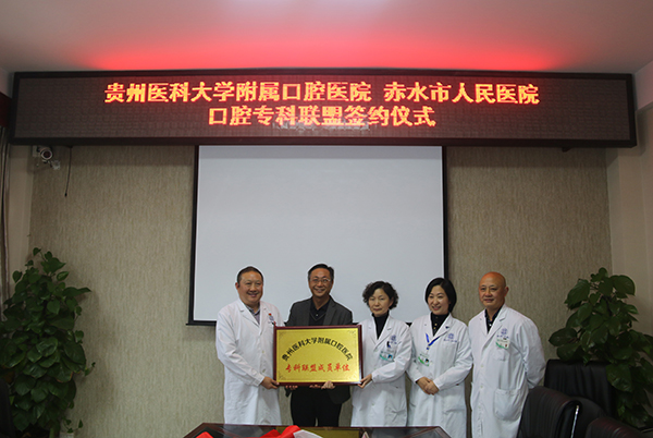 为贯彻落实省委、省政府和省卫生健康委员会医改精神,11月29日,公司副经理王永、医务科主任王刚、医务科李炳洲、党办曾诚应赤水市人民医院的邀请,前往赤水进行专科联盟成员单位签约授牌仪式。参加授牌仪式的有赤水市人民医公司党委书记代铁荣、副经理任健蓉、医务科科长王玉琴、科教科科长徐勇健、耳鼻喉科主任黄静、口腔科主任郭颖及赤水市人民医院口腔科全体医护人员。签约授牌座谈会由赤水市人民医院科教科科长徐勇健主持。