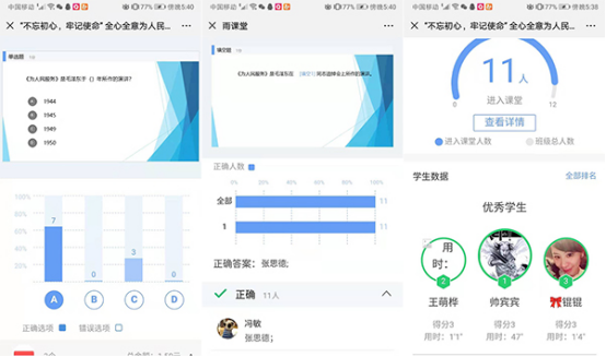 本次授课,刘洪静书记采用“雨课堂”的智慧教学方式,课堂中加入了课堂提问、限时抢答和实时奖励等环节,教学形式独特而生动。党课上,刘洪静书记以“毛泽东同志于1944年9月8日在张思德同志追悼会上所作的演讲‘为人民服务’”为引,将其与十八大习近平总书记提出的“以人民为中心”思想相结合,指出我党始终践行全心全意为人民服务的宗旨,始终把人民放在心中的最高位置,始终为人民利益而奋斗。他强调,共产党员必须坚持以人民为中心的发展理念,学习习近平总书记“我将无我、不负人民”的崇高境界,把人民对美好生活的向往作为奋斗目标,全心全意为人民服务。
