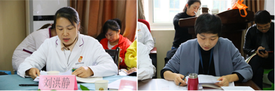 在听取了唐正龙副经理的主题发言后,修复种植科主任董强、口腔解剖生理学教研室主任贾莹、教工第一党支部(行政后勤党支部)书记周天分别作了学习发言。