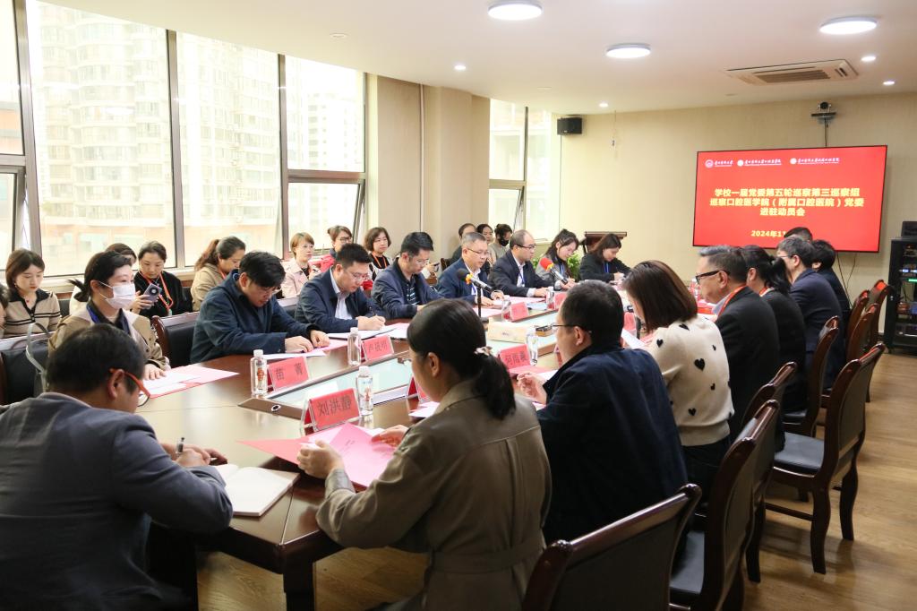 机关党委书记、巡察办主任陆法钢,第三巡察组组长左临轩及巡察组成员卢晟明、钟乃凤、苗菁、赵宇红,3044永利集团(附属口腔医院)领导班子成员出席会议;3044永利集团(附属口腔医院)副科级以上干部,临床医技科室、行政职能部门、教研室、实验室主要负责同志,党支部书记及部分教职医护员工生代表列席会议。