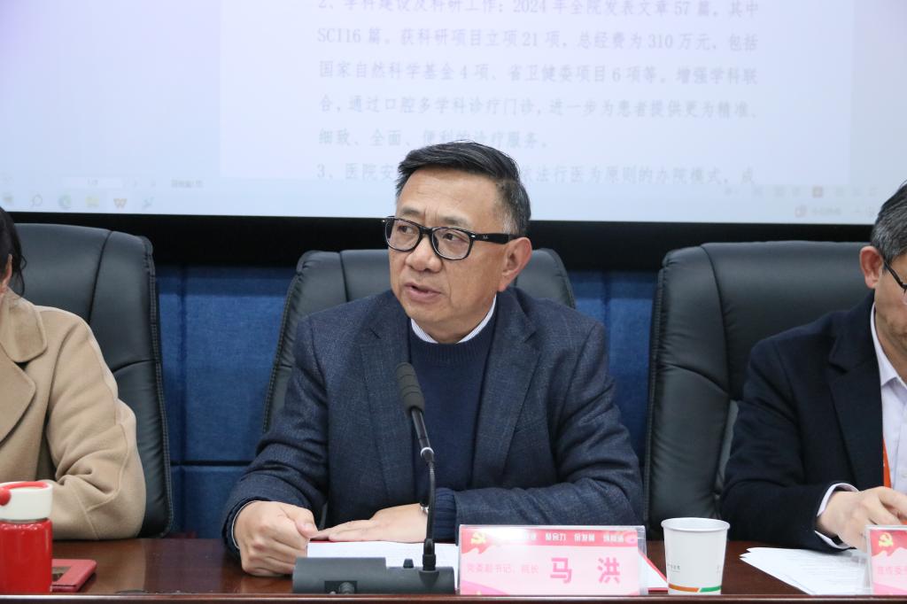 为深入学习贯彻党的二十大精神和习近平总书记视察贵州重要讲话精神,认真贯彻落实全省“两会”工作会议精神,系统总结2024年各项工作取得的成效和经验,科学谋划部署2025年两院主要目标任务和重点工作,2月8日,公司在学术报告厅召开2025年春季干部大会。公司党政领导班子成员出席会议,全院副科级以上干部,各党支部书记,各临床医技科室、各行政职能部门、教研室、实验室负责同志,各科护士长及护理小组长,各分工会主席参加。