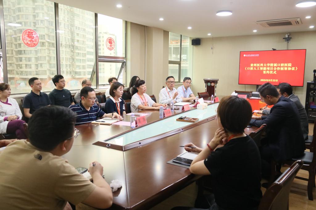 会上,马洪为签约仪式致辞,对北京羽医甘蓝信息技术有限公司一行的到来表示欢迎,并介绍了双方参会人员和医院基本情况。他表示,公司作为省内口腔医疗的领军机构,拥有悠久的历史和深厚的文化底蕴,多年来,公司在团队建设、人才培养、科研创新等方面成就显著,形成了完整的学科体系,拥有高素质专业化的医疗团队,此次合作是公司顺应潮流、提升核心竞争力和在数字化转型上的重要举措,希望各科室主动结合自身工作实际,充分发挥专业优势,提出创新想法和具体做法,打破传统思维,积极探索人工智能在口腔诊疗、教学、科研等方面的应用,共同推动口腔医疗领域的智能化发展。同时,希望双方建立长期稳定合作关系,实现资源共享、优势互补。