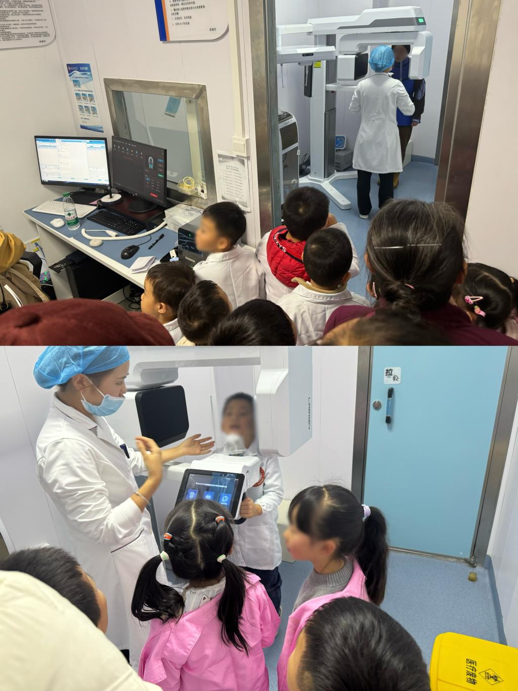 参观环节,在医务人员的带领下,小朋友们分组有序地参观牙科诊室、影像科,近距离观察先进的影像设备,直观了解口腔检查的全过程,减少对牙科诊疗的陌生感与恐惧心理。