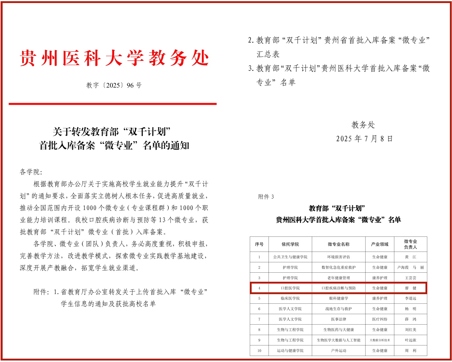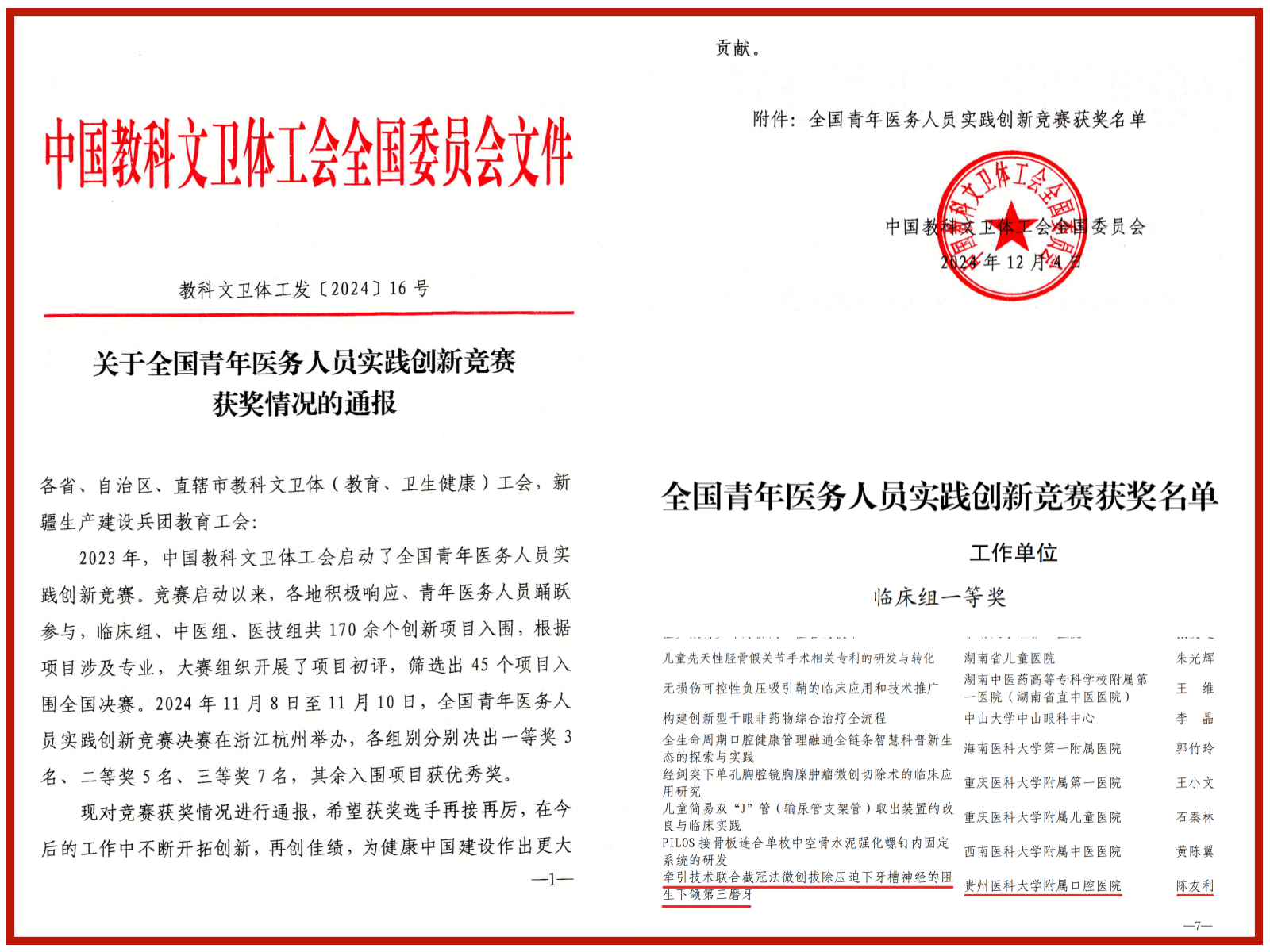 这一年,我们以团队建设为根基,人才梯队焕发新活力。顺利完成本科公司产品审核评估;领导干部领航“医”路,开展“新生成长营”系列讲座,助力员工培养;住院医师规范化培训结业考核通过率再创新高,总通过率达83.97%,高于全国近13个百分点;获批贵州省住院医师规范化培训专业质量控制中心挂靠单位,教育部“双千”计划首批入库微专业,省级“金课”3门、校级创新创业训练项目15项、教改项目2项、临床医学博士点目录外二级学科博士授权等多项成果;“贵州省研究生公司产品改革项目”拟立项3项;《口腔黏膜病学课程》获评新华网全国高校课程思政示范课程。师生在各类竞赛中屡获佳绩,包括贵州省科普讲解大赛、贵州省第三届科普短视频创作大赛、全国青年医务人员实践创新竞赛等。