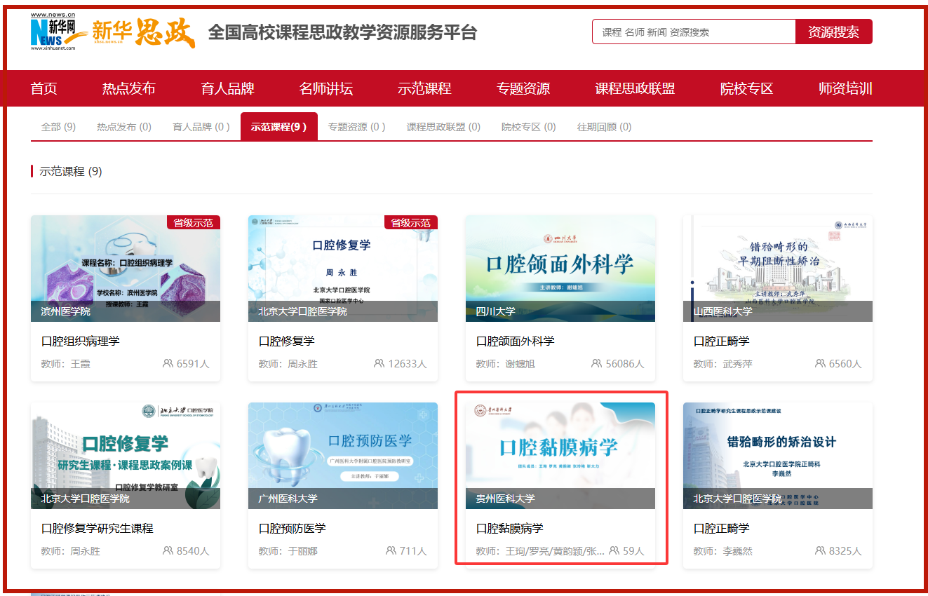 《口腔黏膜病学课程》获评新华网全国高校课程思政示范课程
