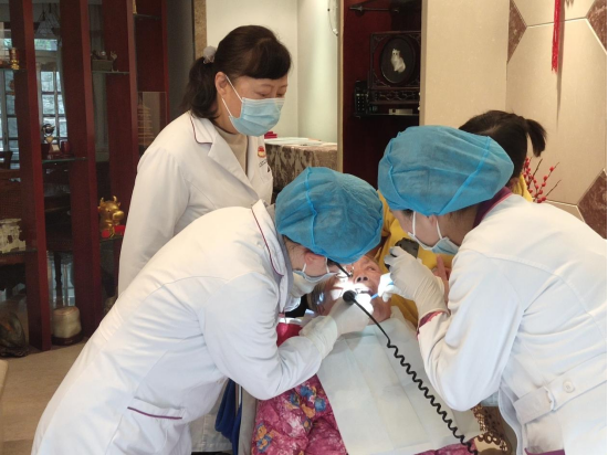 接到求助后,医院立即回应并安排部署。上午9时,公司党委书记张军梅带领口腔修复种植科高层次人才(博士)贾源源及护理人员吴红艳,携带诊疗箱驱车前往患者家中为其诊疗。