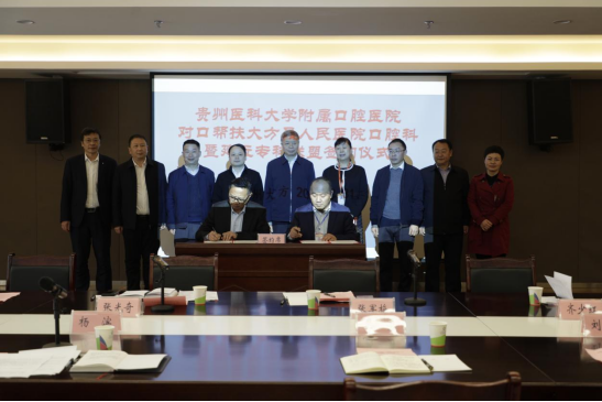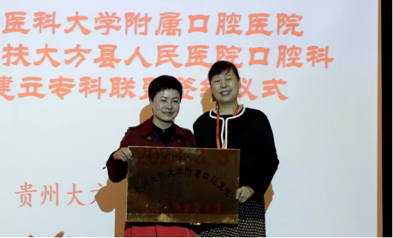 会上,双方签署了专科联盟及对口帮扶合作协议,正式授牌大方县人民医院为口腔医院专科联盟单位,随即前往大方县人民医院口腔诊疗中心举行了专科联盟揭牌仪式。