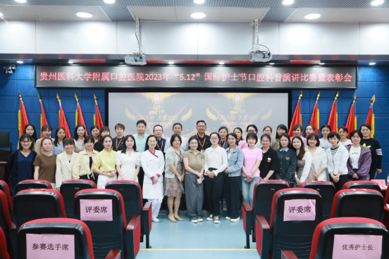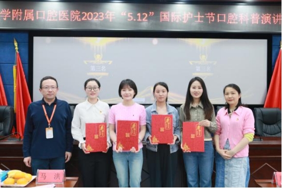 为传承与弘扬南丁格尔精神,丰富护理工作内涵,5月6日,在第112个国际护士节来临之际,公司在学术报告厅举行以“科普促健康,携手向未来”为主题的“5·12”国际护士节口腔科普演讲比赛暨表彰会。院党委副书记、经理马洪,副经理唐正龙,党委副书记何雨羲及董强、刘洪静、卢虹、吴亚东、陈仕红、吴姗担任评委,各临床科室主任和来自12个科室的参赛选手参加会议。