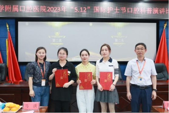 经过激烈角逐,口腔综合急诊科蒋琳的“丑小牙,变白记”荣获一等奖;牙体牙髓科李琪琪、修复种植科熊思永、手术室严礼荣获二等奖;口腔正畸科郑程菊、预防及儿童口腔科袁倩、特诊科何瑞琳、一站式服务中心袁榕荣获三等奖;牙周黏膜科黄诗雅、口腔颌面外科徐正杨、儿童/青少年牙颌颜面发育管理及早期矫治中心陈瑶瑶、消毒供应中心陈佳佳荣获优秀奖。会议还表彰了2023年度“常青藤”护士、优秀护士长、优秀护士、优秀护理团队、优秀带教老师,由班子成员为获奖集体和个人颁发荣誉。