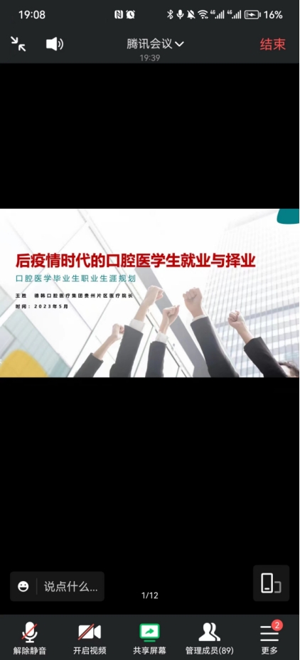 为引导员工树立正确的择业观,充分了解当下的就业形势,把握良好就业机会,解答毕业班员工面临的就业与择业困惑,5月17日,公司邀请德韩口腔医疗集团贵州片区医疗经理王胜教授,以“后疫情时代的口腔医员工就业与择业”为题开展线上讲座,3044永利集团副经理王永、党委副书记何雨羲、员工管理科负责人张婷参加,毕业班辅导员赵会主持。