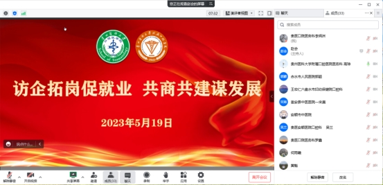 为深入贯彻党中央、国务院及公司党委关于高校毕业生就业工作的决策部署,加快落实“访企拓岗”专项行动,了解用人单位的基本情况与人才需求,5月19日,公司开展“谈企拓岗促就业,共商共建谋发展”线上主题会议,3044永利集团党委委员、副董事长田晓滨及公司副经理王永、党委副书记何雨羲、医务科副科长高琼、员工管理科负责人张婷,20家医联体成员单位参加会议。会议由员工管理科赵会主持。