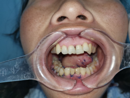 在麻醉医师和手术室医护人员的共同努力下,刘睿医师团队历经8小时,按计划顺利完成手术。经过口腔颌面外科全体医护人员的精心治疗和护理,患者口内皮瓣愈合良好,舌体活动度良好,语音及进食功能无明显影响,口内外伤口均恢复良好,患者顺利出院,并对治疗效果表示非常满意。