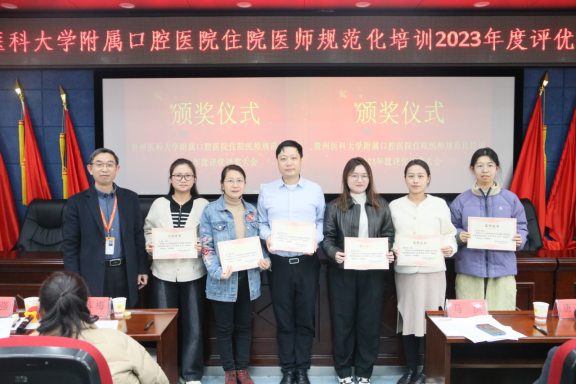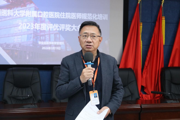3月19日下午,公司在行政楼五楼学术报告厅召开住院医师规范化培训2023年度总结暨评优评奖大会,公司党委书记张军梅,党委副书记、经理马洪,党委委员、副经理唐正龙,党委委员、副经理廖健出席会议;各专业基地负责人、教学主任、带教老师及住院医师参加会议,会议由廖健主持。