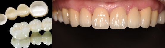 全瓷冠是一种理想的牙齿修复材料,不含金属,全部由瓷材料制作而成。全瓷冠可以模拟天然牙的形态、颜色和半透明性等美学特征,美观性能优秀;且强度高,耐久性好,生物相容性好,无需担心核磁共振检查。