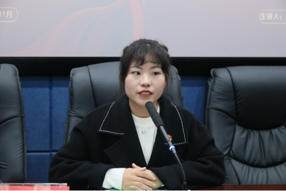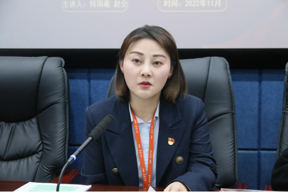 党委副书记何雨羲与本科生第一党支部书记赵会以“立德树人践初心,培根铸魂育新人”为题作宣讲,主讲人通过学习党的二十大精神引入高校教育的初心和使命,同时结合党的二十大精神实质,以典型的案例分析人才培养的具体举措和创新方法。