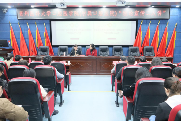 为深入学习贯彻习近平新时代中国特色社会主义思想和党的二十大精神,把讲理论、讲政策、讲故事结合起来,引导全公司党员领导干部不断提升政治判断力、政治领悟力、政治执行力,努力为办好人民满意的教育和人民满意的医院贡献力量,11月15日下午,公司在行政楼五楼学术报告厅举行了一场别开生面的宣讲活动。公司党政领导班子成员出席会议;全院副科级以上干部(含职能部门、教研室、实验室负责人),各党支部书记及支委,部分无临床及教学任务的党员同志列席参加会议。党委委员刘洪静主持会议。